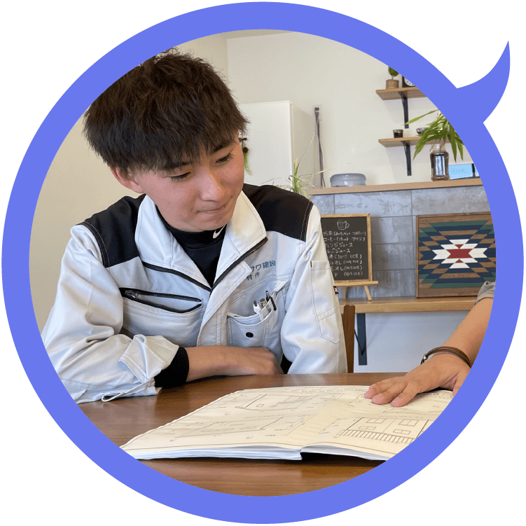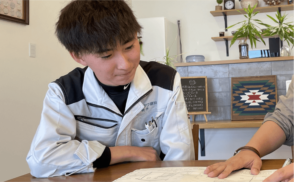 もともと身内に建築に携わっている者が多く、物心ついた時から建築の道に進む気持ちがありました。建築業の中でもたくさんの職種があるなかで、フジサワ建設で現場監督という仕事を選びました。工程、原価、安全、品質管理とたくさんの管理を行い1つの建物を建築し出来上がった時には達成感があります。入社して5年目になりますが、失敗や成功などいろいろなことを経験しましたが、それでもお客様の喜ぶ姿や感謝の言葉を頂いたときにはとてもやりがいを感じます。