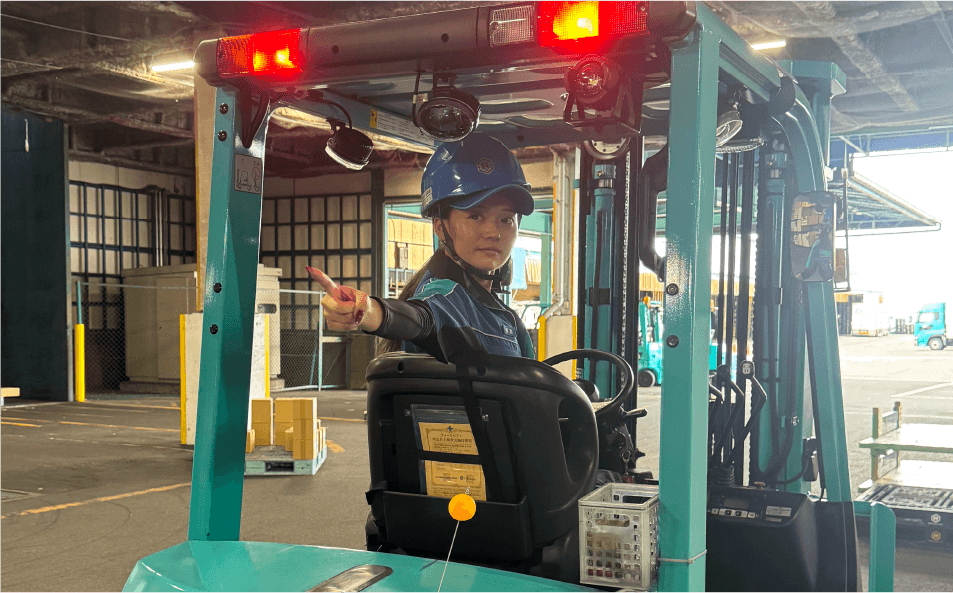 仕事の中でやりがいを感じる瞬間は、お客様や他部署の方、自部署の方など、関わる皆さまから「ありがとう」と言っていただけることです。その言葉をいただくたびに、とても嬉しく、励みになります。また、フォークリフト作業を担当した際に、思い通りに操作できた時には達成感があり、自信にも繋がりました。
