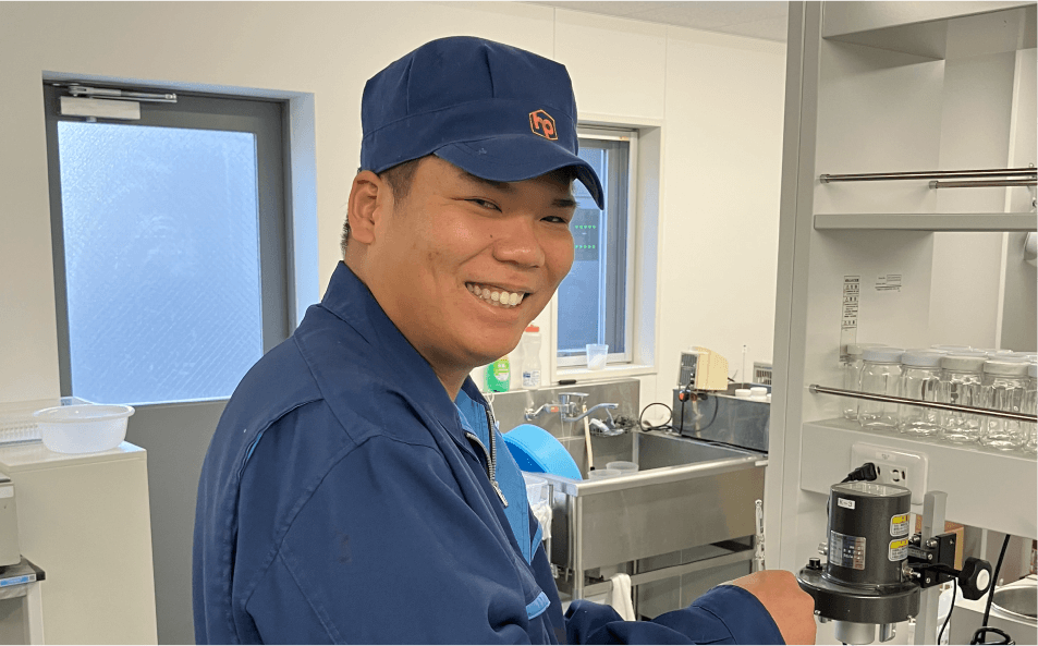 現在の職場を選んだ理由は、若い社員が多く、活気に満ちた雰囲気に魅力を感じたからです。社内では資格取得に対する支援制度や手当が充実しており、スキルアップを目指す環境が整っています。さらに、工場内で最年少の私にも関わらず、責任ある業務を任せてもらえることで、自分の成長を実感できる点に大きなやりがいを感じています。挑戦を通じて能力を高められる職場で、日々充実した時間を過ごしています。