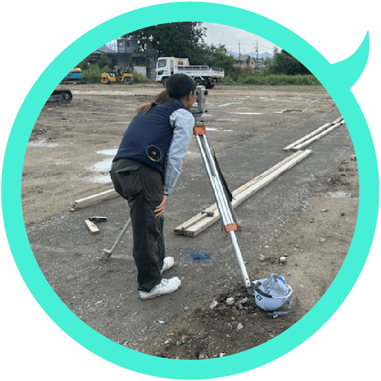 姉の影響で、土木施工管理技士の資格の勉強を始めたことがきっかけで今の仕事に出会いました。建設業界は男性の方が多く、自分にはできるのか不安でしたが、人に恵まれ、たくさんの方々に教えてもらって日々いろんなことを吸収しながら頑張っています。少しずつ女性の方も増えたらいいなと思います。